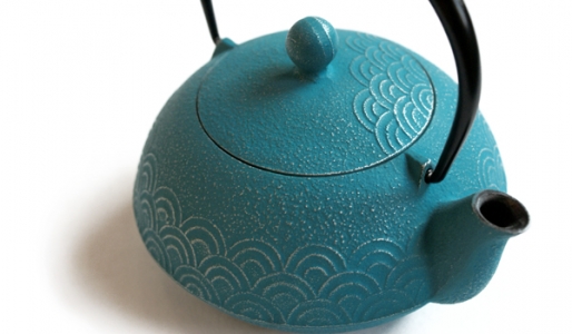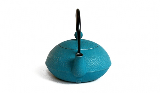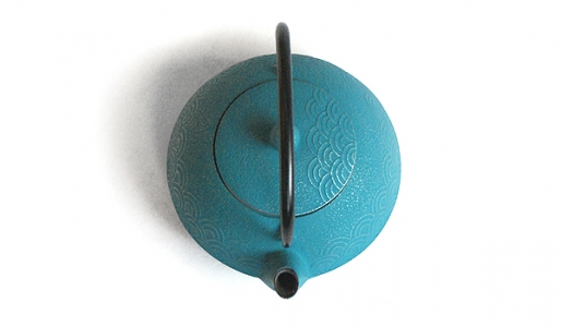 Théière en fonte avec filtre métallique et intérieur émaillé. Décor traditionnel en écaille