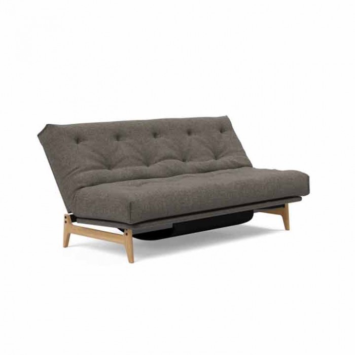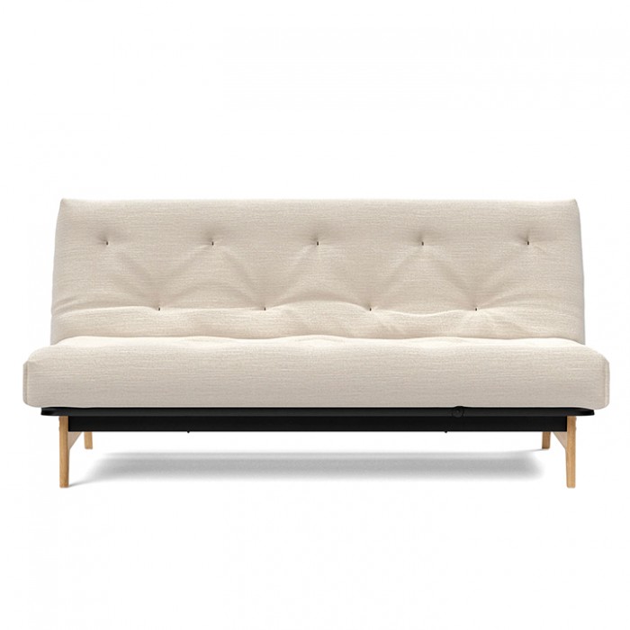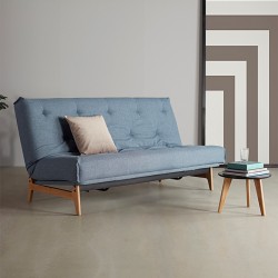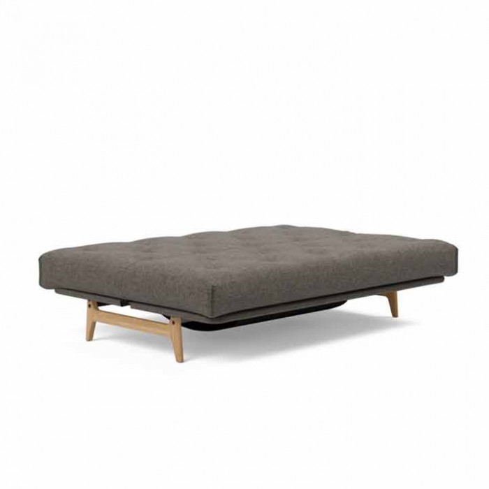 Banquette-lit de type clic-clac, structure solide en métal, sur un magnifique pied en chêne massif. Couchage de 140 x 200 cm, avec une tête mobile à quatre positions. Manufacturé dans un grand choix de couleurs pour les matelas capitonnés, avec des tissus d'ameublement très solides. Conseillée, la housse de structure du siège n'est pas comprise dans le prix et peut être achetée dans les accessoires, comme les coussins accoudoirs et décoration.