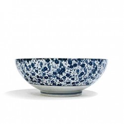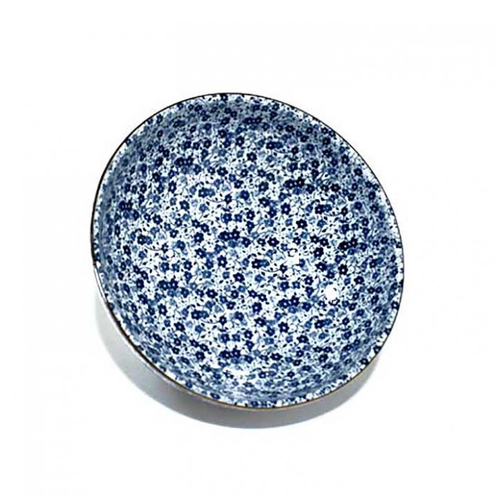 Saladier en céramique décorée de petites fleurs bleues.