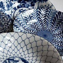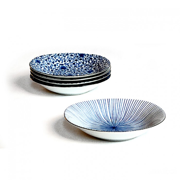 Set de 5 assiettes ovales de motifs différents. Conditionnées dans une boite en carton.