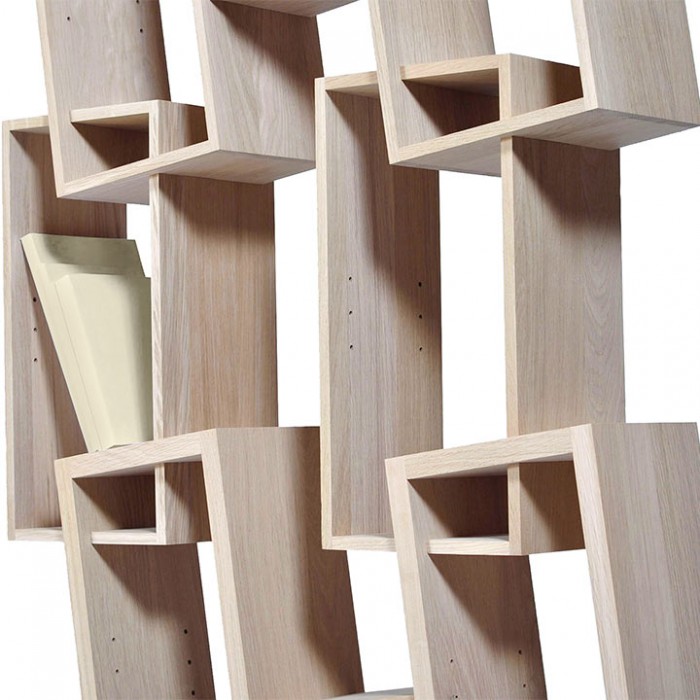 Assemblage de 2 étagères KAO simples, la bibliothèque KAO DOUBLE met en valeur livres et objets. Chaque élément peut recevoir une tablette en verre réglable.