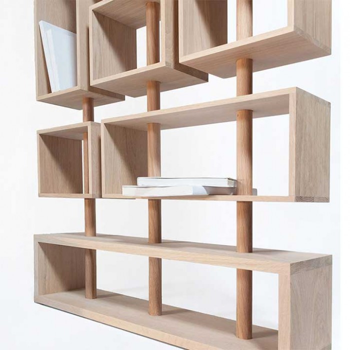 11 éléments coulissent et 7 pivotent sur 3 axes formant une bibliothèque modulable suivant votre inspiration et vos besoins.