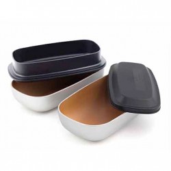 Boîte bento très élégante de grande taille, à deux compartiments, utilisable aussi bien au déjeuner dehors qu'au travail. Passe au micro-ondes et lave-vaisselle sans les couvercles. Le grand compartiment est prévu pour le riz et le petit pour la viande, le poisson et les légumes.
