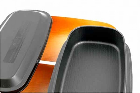Boîte bento très élégante de grande taille, à deux compartiments, utilisable aussi bien au déjeuner dehors qu'au travail. Passe au micro-ondes et lave-vaisselle sans les couvercles. Le grand compartiment est prévu pour le riz et le petit pour la viande, le poisson et les légumes.