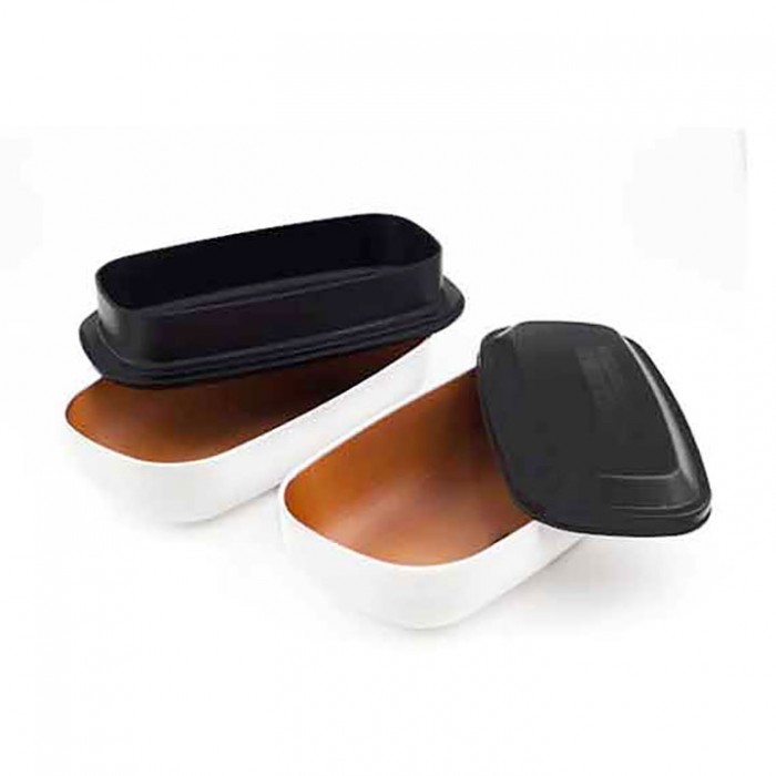 Boite en plastique sans BPA, avec joints en silicone, d'une contenance de 1 litre. Passe au micro-ondes et lave-vaisselle sans les couvercles.