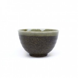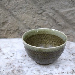 Bol de qualité en grès blanc du Japon, avec un décor émaillé dans les tons de brun vert-olive.