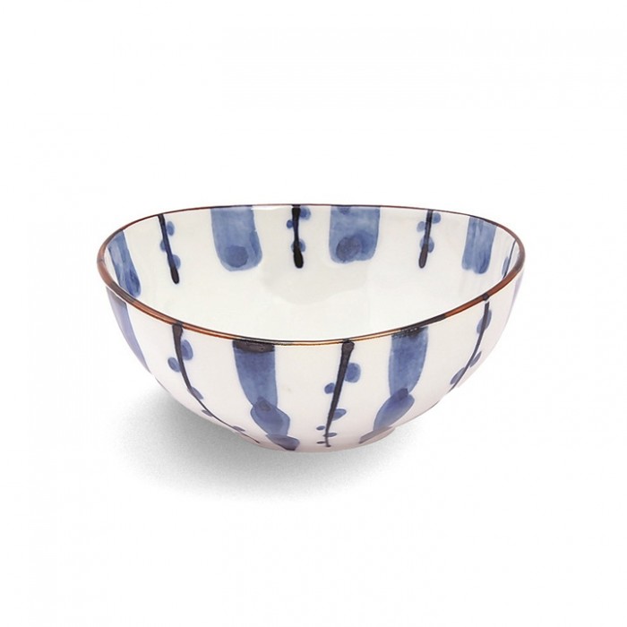 Bol en porcelaine du Japon, décoré d'une frise intérieure bleue, pour le riz ou autres mets.