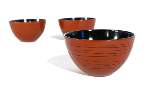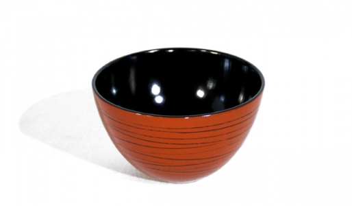 Magnifique bol tourné en orme et laqué rouge avec un fin décor de lignes noires et noir à l'intérieur. Très agréable pour une petite soupe miso ou un riz japonais.