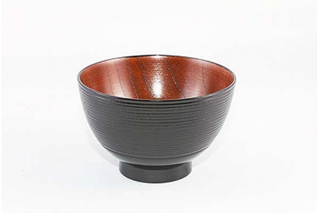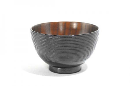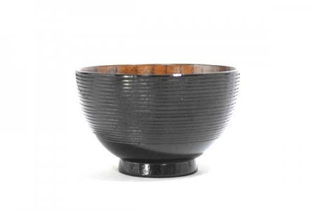 Bols en bois tourné, laqué noir et finement strié horizontalement. Intérieur bois verni.