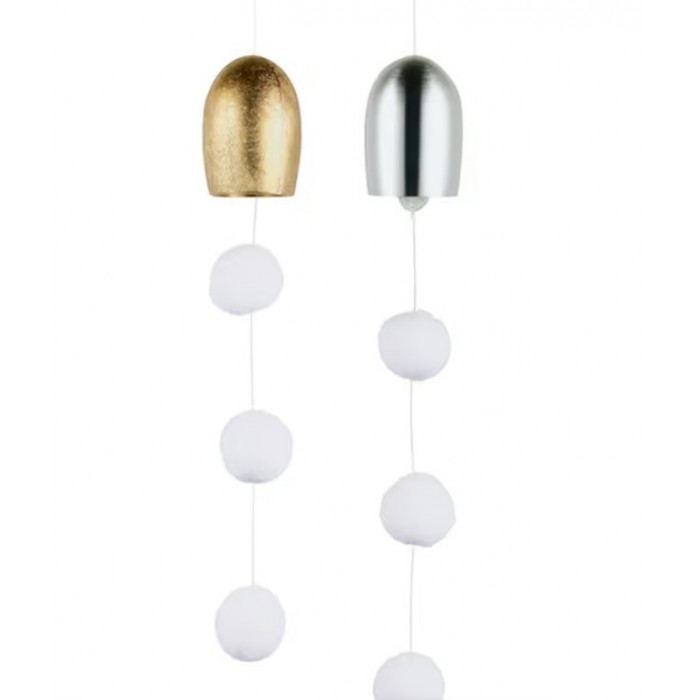 Un petit carillon éolien qui ressemble à un bourgeon et comporte trois boules de coton moelleux. Vous pouvez choisir entre deux types : argent et or brossé.
