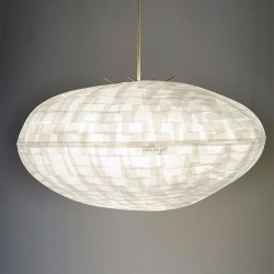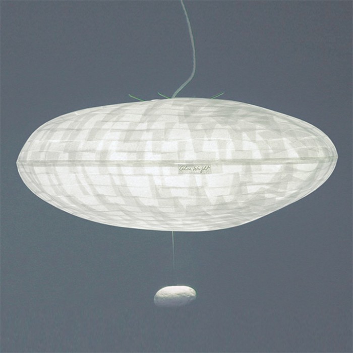 Sa belle lumière, filtrée par les fibres du papier washi, s'impose au milieu de l'espace en créant une atmosphère claire et chaleureuse.