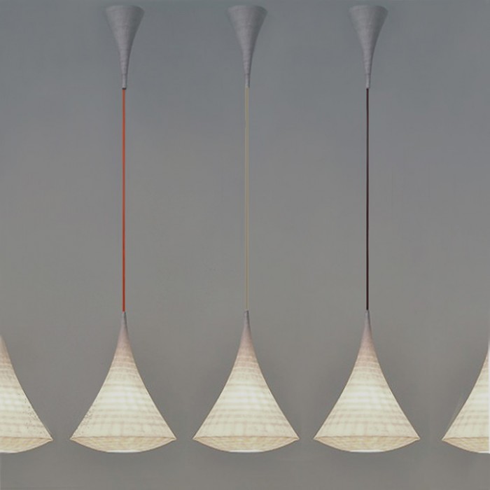Le pavillon cache est en papier, assorti à l'abat-jour. Le câble est disponible en trois coloris.