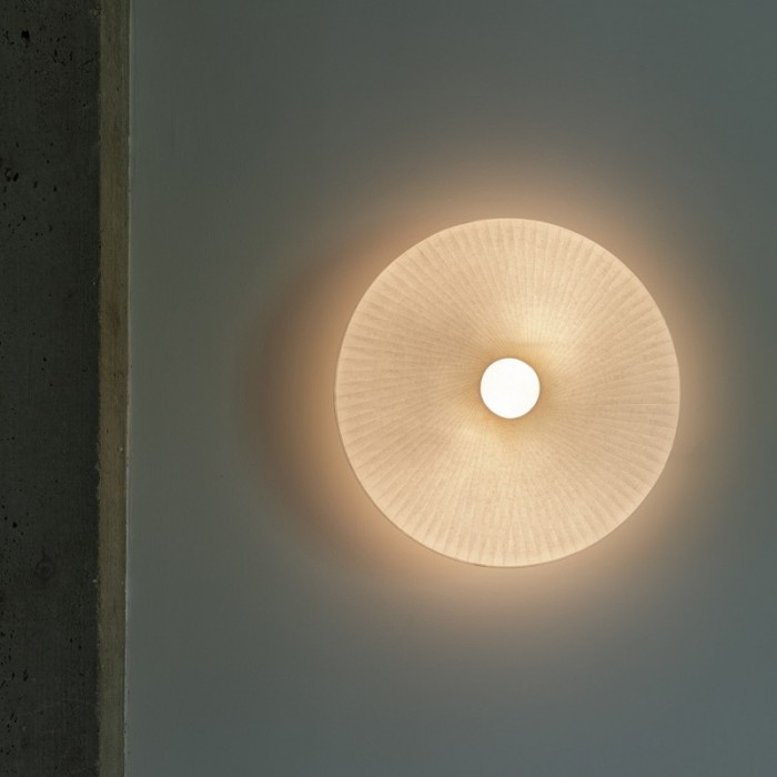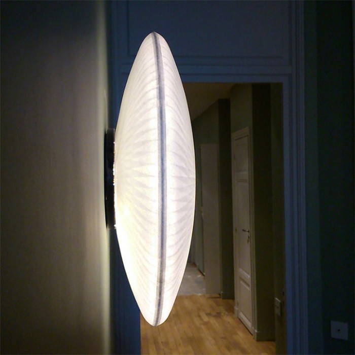 Un abat-jour lentiforme à placer en applique ou en plafonnier.
