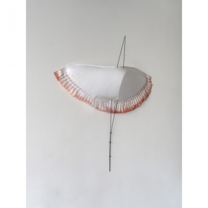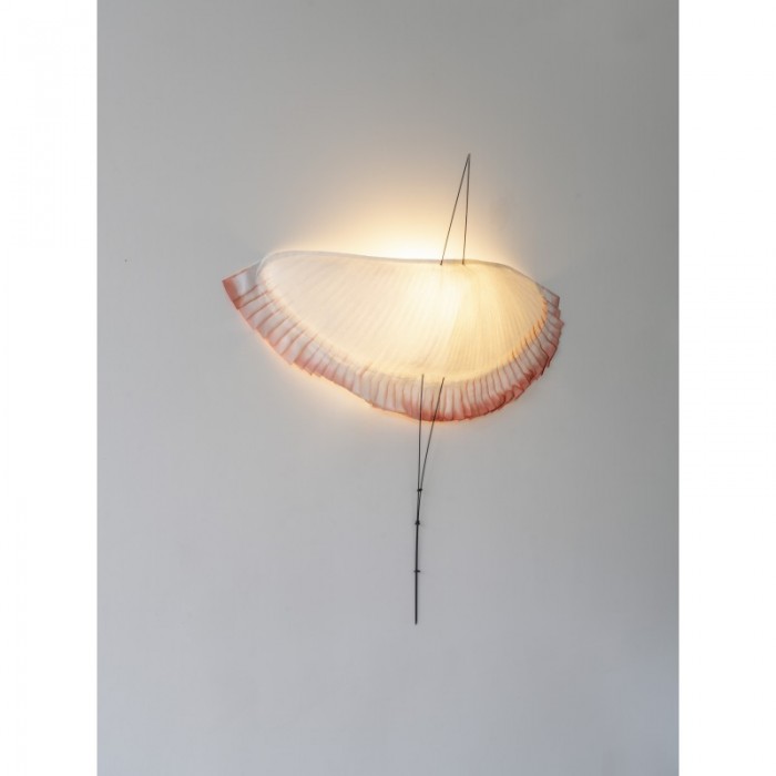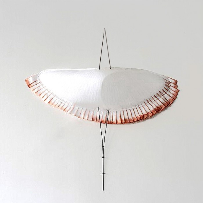 Ce luminaire prend la forme délicate d'un oiseau en vol, la lumière émanant du centre. Les plumes des oiseaux se parent de rouge coquelicot au rouge brique, deviennent Tsuru, grue du Japon.