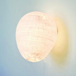Cet oeuf de papier s'illumine. A l'intérieur, source de vie, l'ampoule lestée se déplace à l'aide d'un aimant. L'oeuf peut ainsi se tenir droit, se coucher, s'incliner, donnant alors à  la lumière différentes orientations.