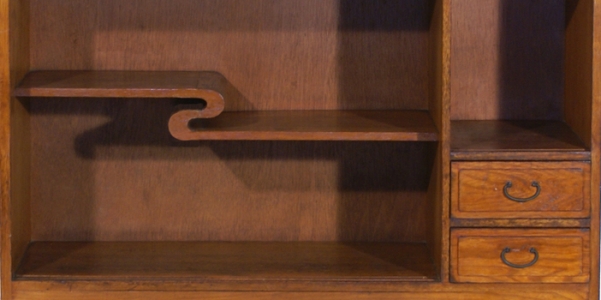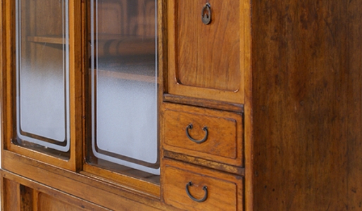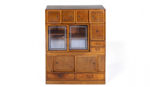 Meuble composé de deux parties, dont une avec deux portes vitrées. Début de l'ère Showa, très "vintage".