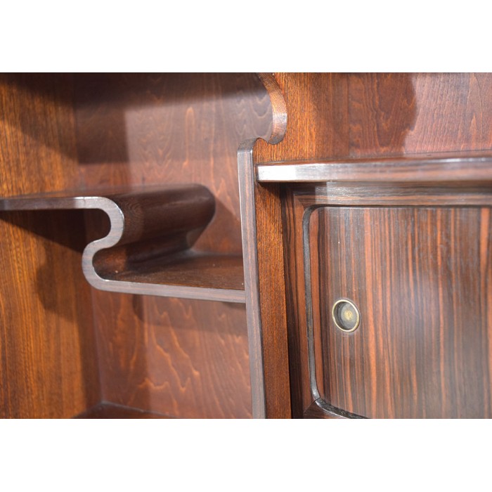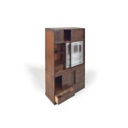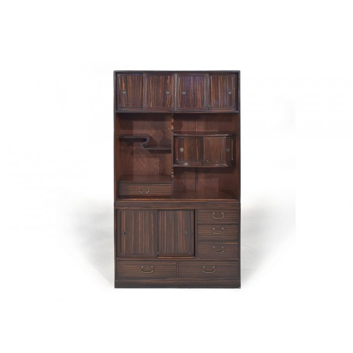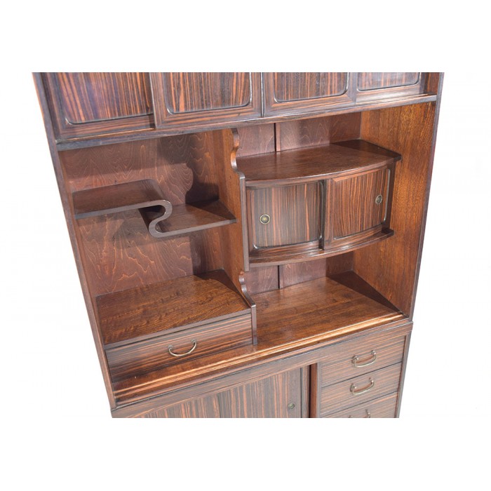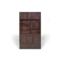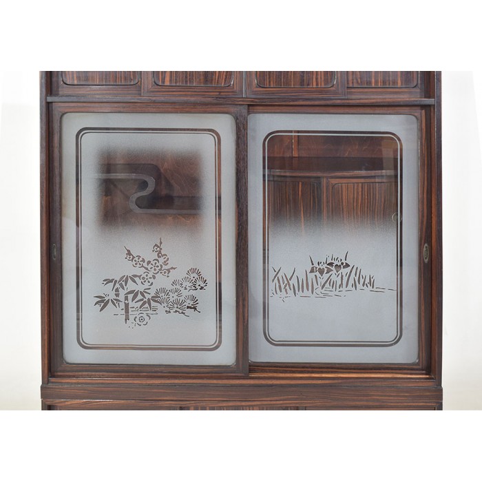Meuble composé en deux parties, dont une avec deux portes vitrées.