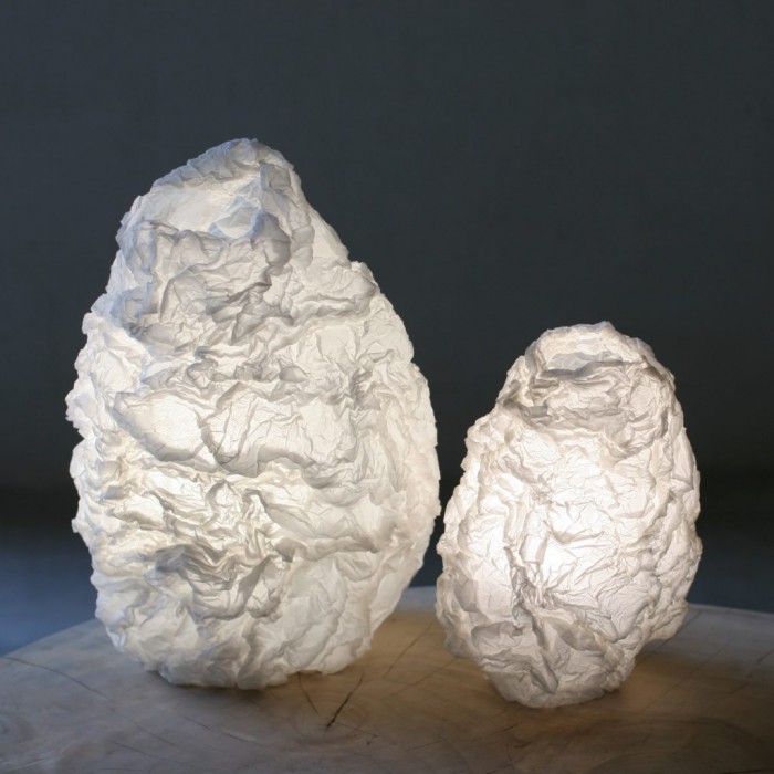 La lampe en papier sulfurisé, plissé et chiffonné offre une ambiance douce et chaleureuse à n'importe quel espace.