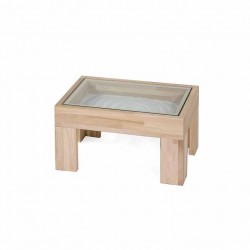 Chevet en hêtre massif abouté, avec un plateau en verre, qui protège le jardin zen de sable fin.
