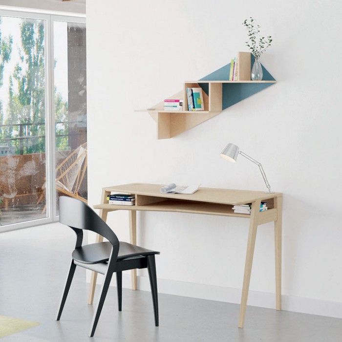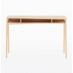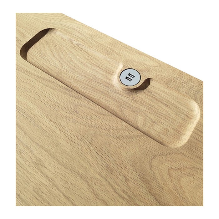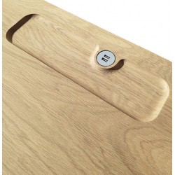 Quand le bureau prend forme autour de l’utilisateur…. Ce meuble en chêne massif met en valeur le savoir-faire de l’ébéniste par les détails de construction et la précision des assemblages visibles. Le plateau offre un accès à des prises de chargement USB.