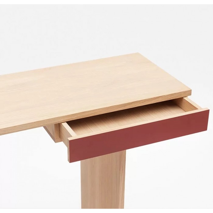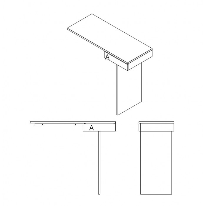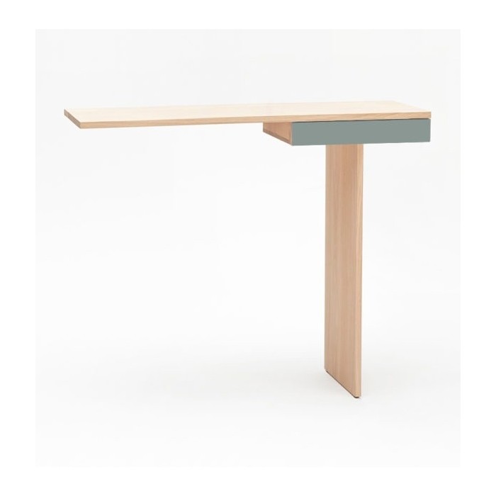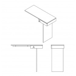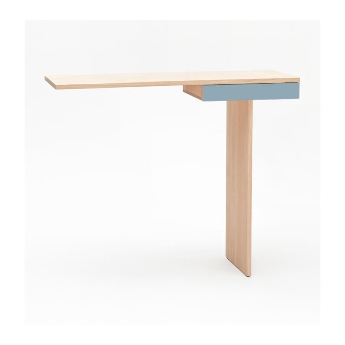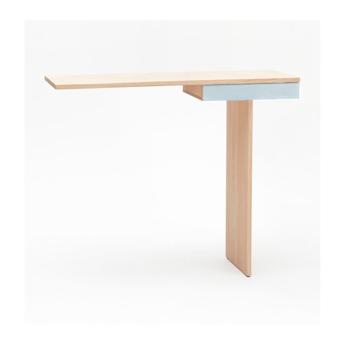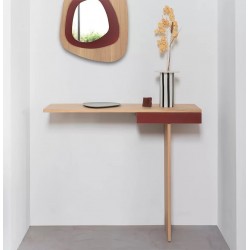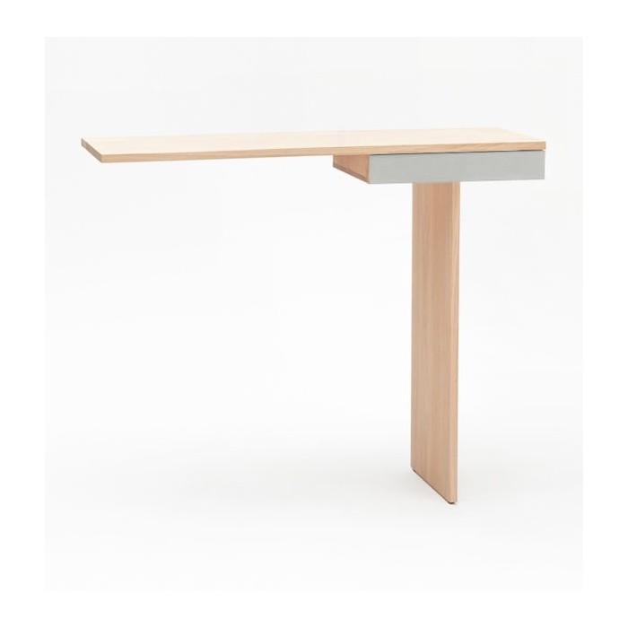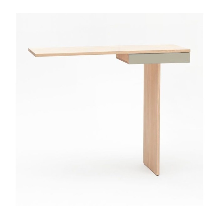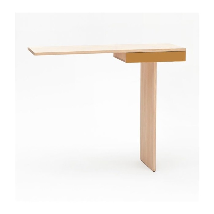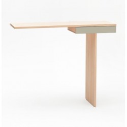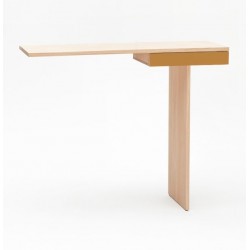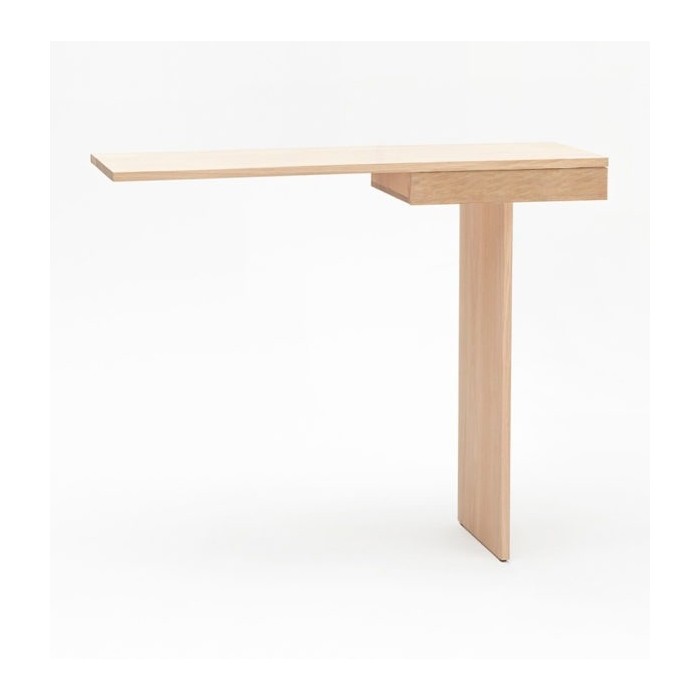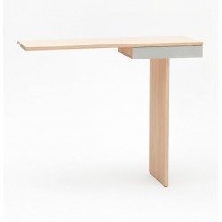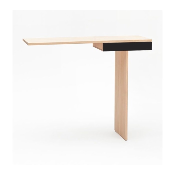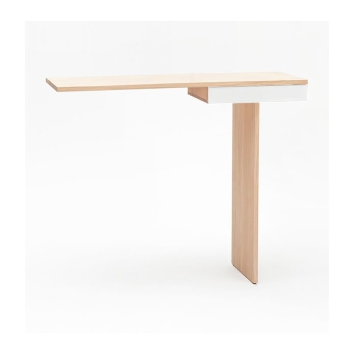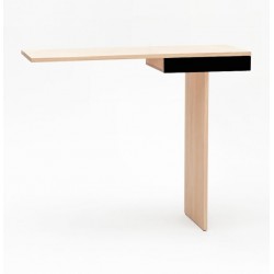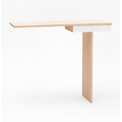 Minimalisme et élégance qualifient la console TI. La finesse du dessin lui donne un caractère aérien et léger. Semblant en équilibre sur son unique pied, 2 points de fixation murale viennent lui donner une parfaite stabilité. Le tiroir est équipé d’une butée anti-bascule.