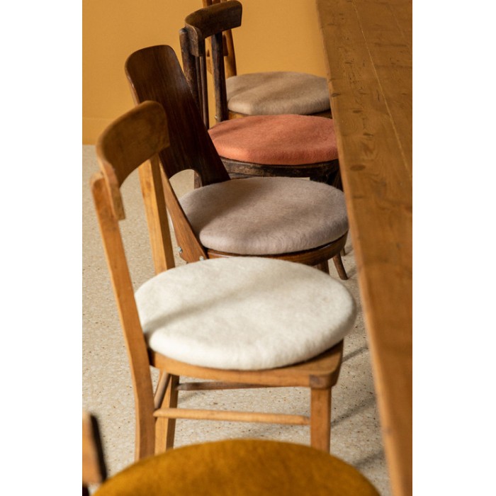 Sa fabrication est entièrement artisanale. A partir de laine de mouton cardée, d’eau et de savon, un long travail de pression et de friction permet aux fibres de laine de s’entrelacer pour obtenir une matière moelleuse, à la douceur généreuse. Sain pour l’environnement, le feutre est un excellent isolant thermique et phonique. C’est également une fibre naturelle anallergique ne favorisant pas la prolifération des bactéries ou des acariens, et ne dégageant aucune substance nuisible.
