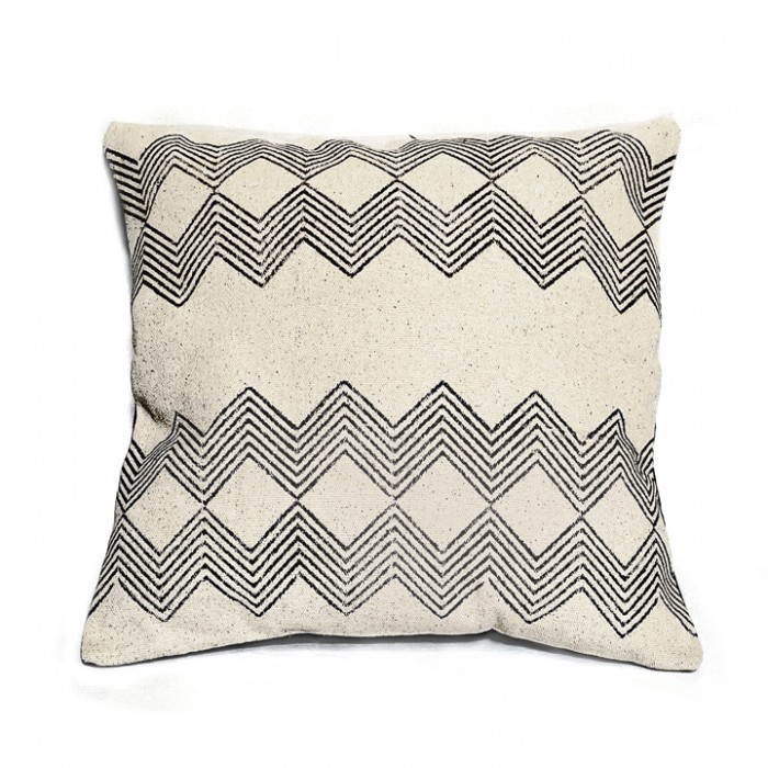 Coussin d'ambiance pour le salon, avec un motif inspiré de la tradition des villages de l'Afrique.