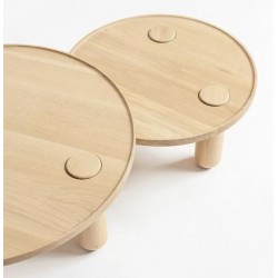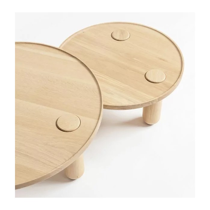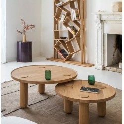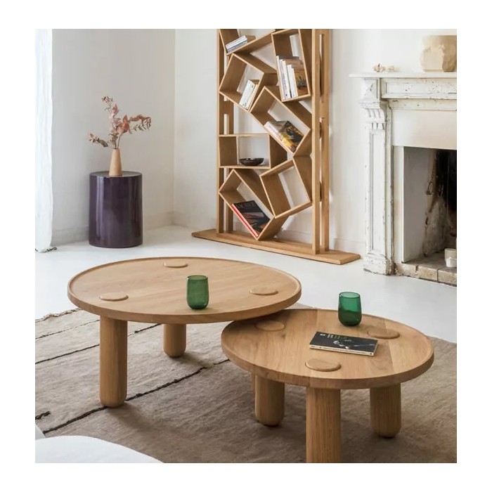 Toute en rondeurs, la table basse TRIPODE prend place dans votre salon, seule ou par deux, en gigogne. Le plateau en chêne massif creusé dans l’épaisseur met en valeur le veinage de cette matière noble et chaleureuse. Les 3 cabochons apportent une touche d’originalité.