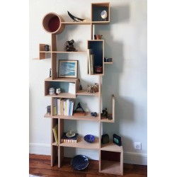 Aérienne et légère, ponctuée de points de couleurs, la bibliothèque RÉSO semble être inachevée. Intrigante, elle offre des espaces fonctionnels pour ranger et exposer livres et beaux objets.