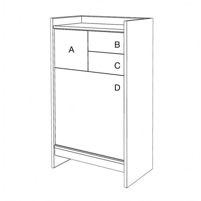 1 tablette en bois réglable en hauteur sur taquets, dans chaque compartiment.