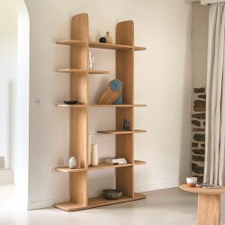 D’une élégante sobriété, la bibliothèque TÉHÈME DOUBLE attire le regard par la présence de ses lignes. En s’approchant, le savoir-faire de l’ébéniste se découvre: ajustement précis des rainures et languettes, pièces de jonction parfaitement ajustées, régularité du ponçage manuel.