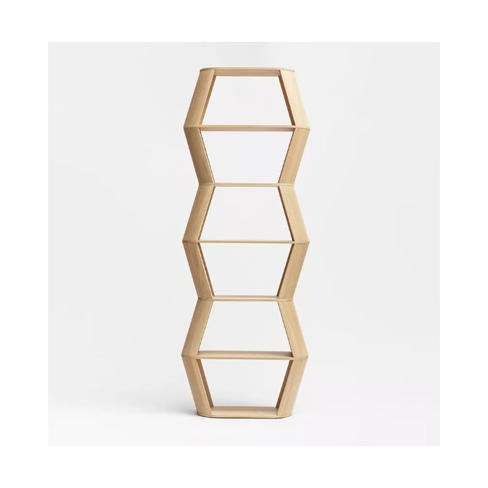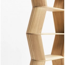 La bibliothèque étagère hexagonale LOFT est grand meuble de rangement ouvert en bois massif français.