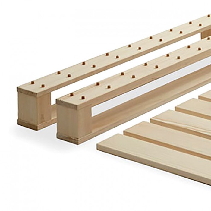 Entre la palette et le lit en carton, cette structure sans métal, est livrée dans un carton compact. Il est monté en 5 minutes, sans outils; très solide et de belle finition, on peut poser dessus un matelas ou un futon sans souci. Pour un lit de 160 x 200 cm, il suffit de poser deux pièces côte à côte. En àpicéa massif SFC de 1ère qualité, fabriqué en Suisse