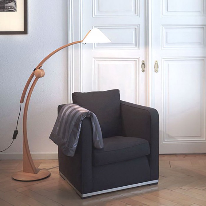 Le lampadaire POLLO est simplement original par son réglage; le bras supérieur supportant l'abat-jour se coince dans l'articulation, dans un sens ou dans l'autre, ainsi on obtient la  hauteur et la profondeur désirée.