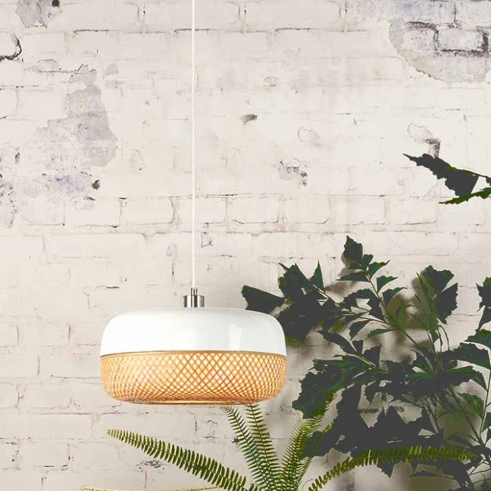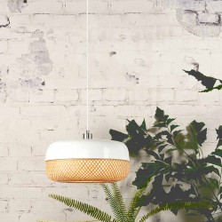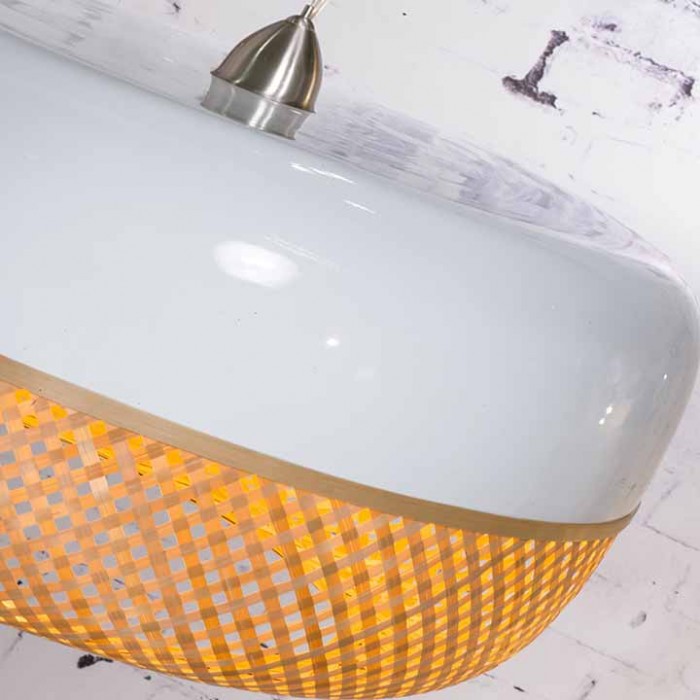 Suspension en bambou, la partie fermée dessus est laquée blanche.