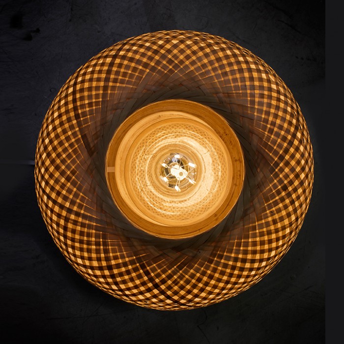 Lampe de table originale en bambou; posée sur une table, sur un rayonnage ou au sol, elle dégagera son jeu de lumière en embaumant de rayons chaleureux l'espace.
