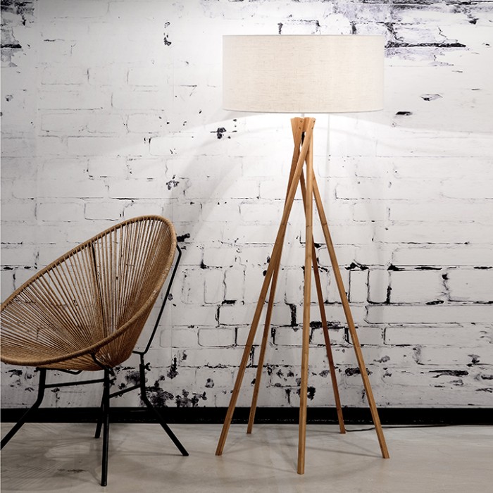 La structure légère en bambou supporte un bel abat-jour en lin clair.