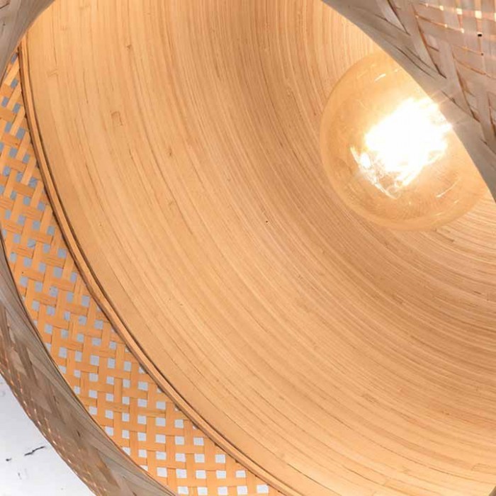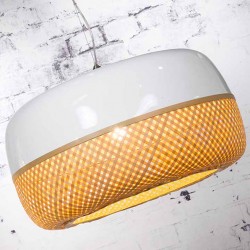 Suspension en bambou, la partie fermée dessus est laquée blanche.