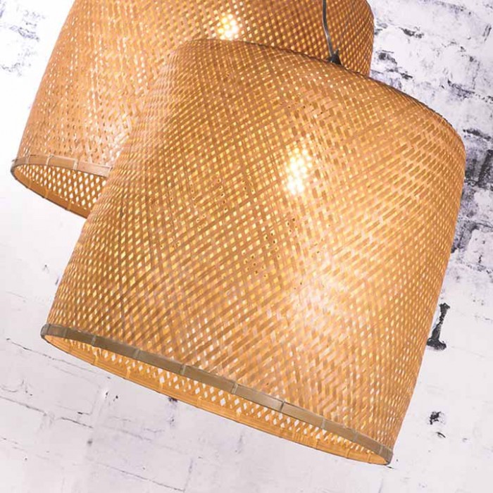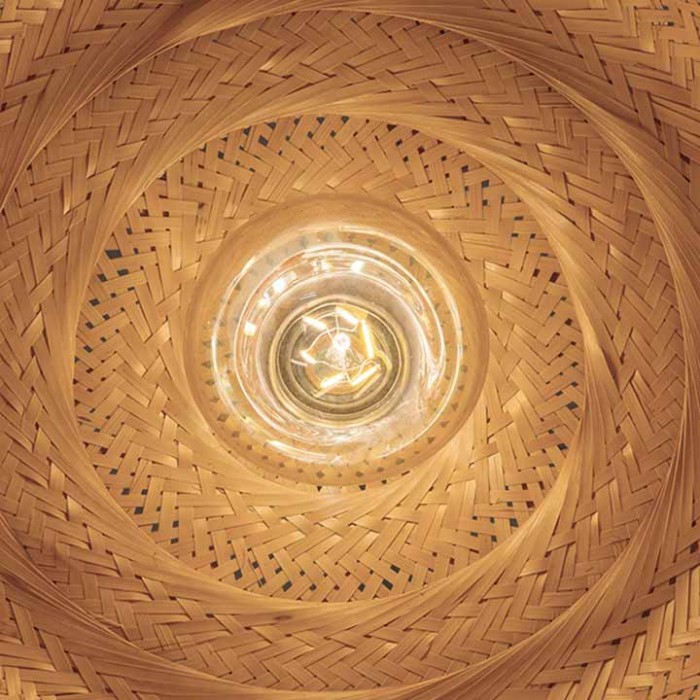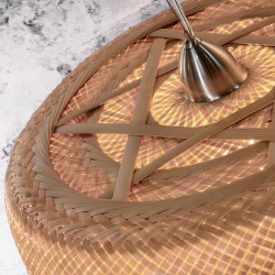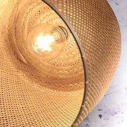 La suspension Serengeti,comme un panier à l'envers, est suspendue en étendant une lumière douce et diffuse. Cette lampe en fibre de bambou tressé, de couleur naturelle, réveille des souvenirs de voyage en Asie ou en Afrique.