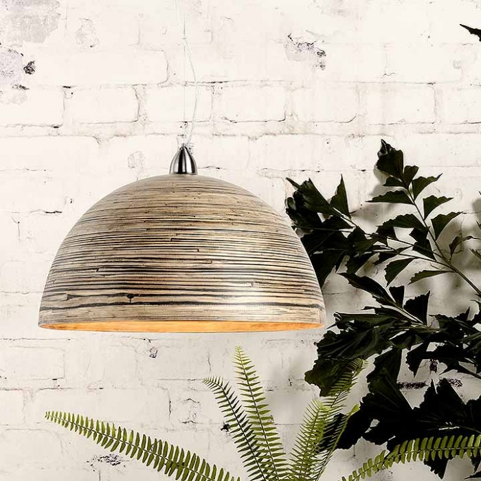 Technique traditionnelle pour une suspension moderne au design d'aujourd'hui. Le bambou n'est pas uniforme dans ses couleurs, ce qui lui donne cette belle couleur bistre.