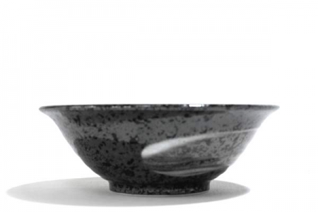 Coupe évasée en grès émaillé noir moucheté, avec un décor blanc- beige.