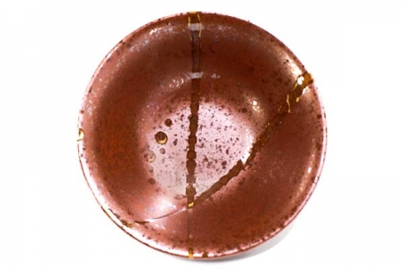 Coupe évasée brun-rouge moucheté, avec décor en brillance plus sombre.