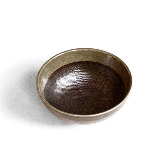 Ce bol est inspiré du mortier traditionnel japonais. En grès très robuste, il a le fond strié en relief, qui permet de piller les graines, mais il est maintenant utilisé pour la soupe ou des salades originales.