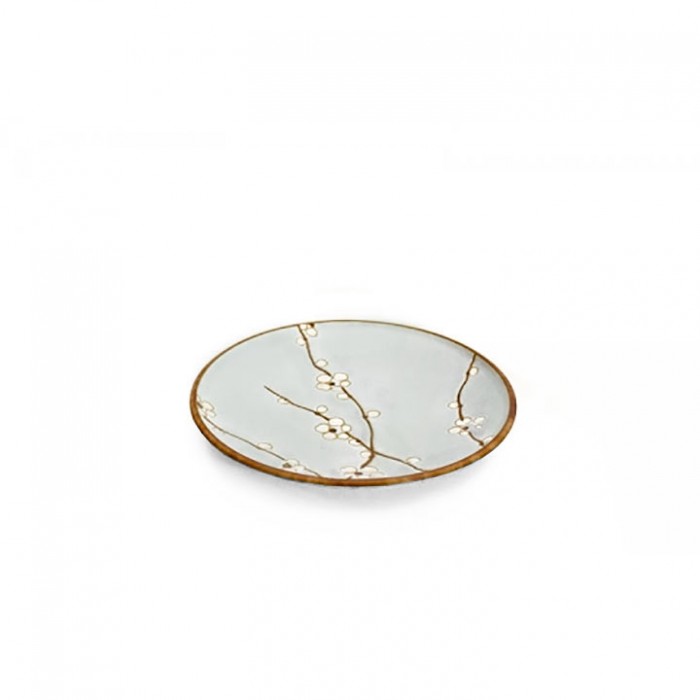 Assiette décorés de branches de cerisier en fleurs, en grès fin blanc de la ville de Tokoname. Convient au four à micro-ondes et au lave-vaisselle.