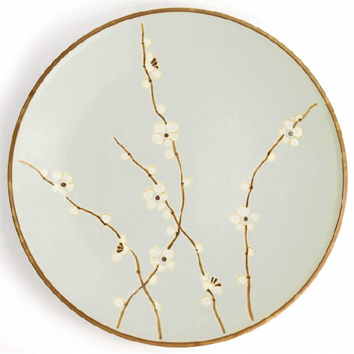 Grand plat décoré de branches de cerisier en fleurs; en grès fin blanc de la région de Tokoname. Convient au four à micro-ondes et au lave-vaisselle.