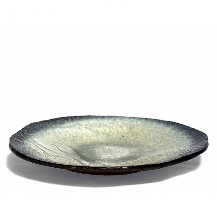Assiette plate de style artisanal en porcelaine émaillée.