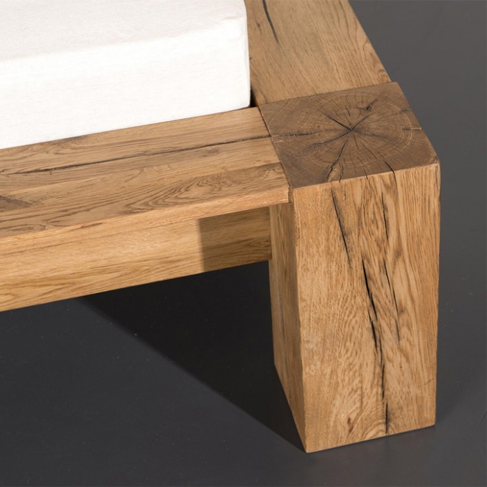 Lit en chêne des marais massif (Quercus palustris), naturel, huilé, avec tête de lit. Le sommier est à choisir, il n'est pas inclus.