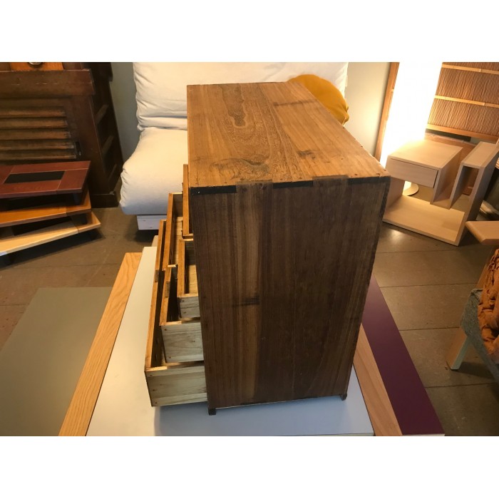 Petit meuble japonais, ancien, avec deux portes coulissantes et 5 tiroirs.