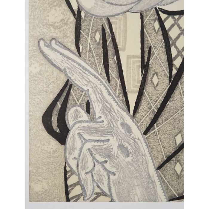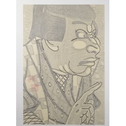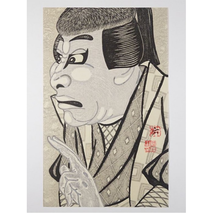 Early work includes flower studies and the series 'Hachi dai-jigoku zu' (Eight Types of Hell) in an edition of two. Admird by the President of Shochiku, the company which runs the Kabuki-za, who gradually interested others in his work, until the editions reached seventy-two. In 1992 Kokei changed his brightly coloured style to a semi-monochrome palette. He uses extremely thin paper made from 'ganpi' and does all his own cutting and printing. His perceptive, slightly grotesque studies of contemporary actors have made him the most notable artist of Kabuki prints since Natori Shunsen (q.v.).