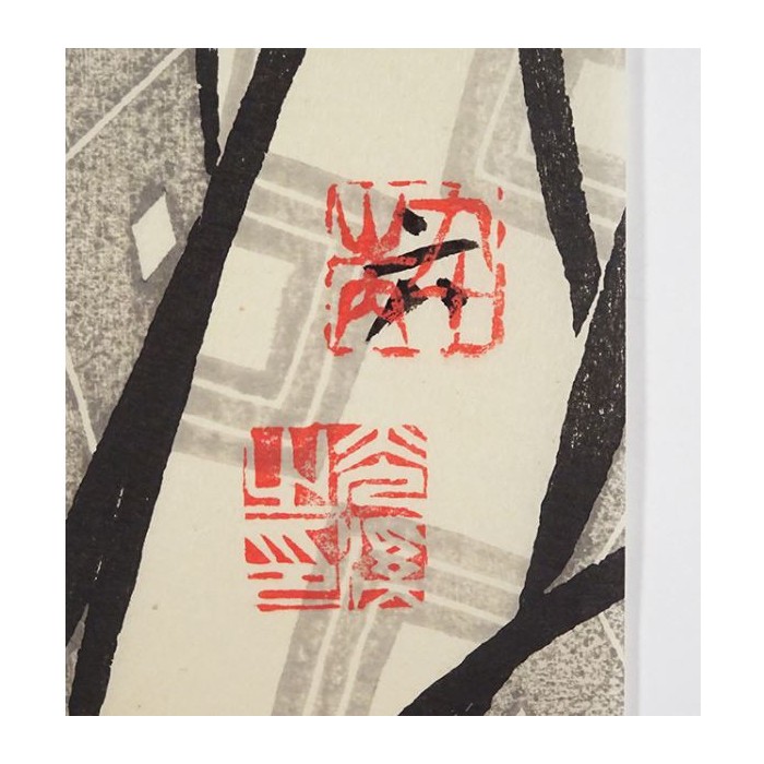 Print artist. One of postwar Japan’s leading designers of woodblock theatre prints. Practiced woodblock carving as a side interest while pursuing a career as an office executive. In 1978 a kabuki performance at the National Theater inspired him to produce a series of theatre prints, after which he became a professional woodblock print artist. He went on to produce around 12 theatrical print designs in series annually from 1978-2000.